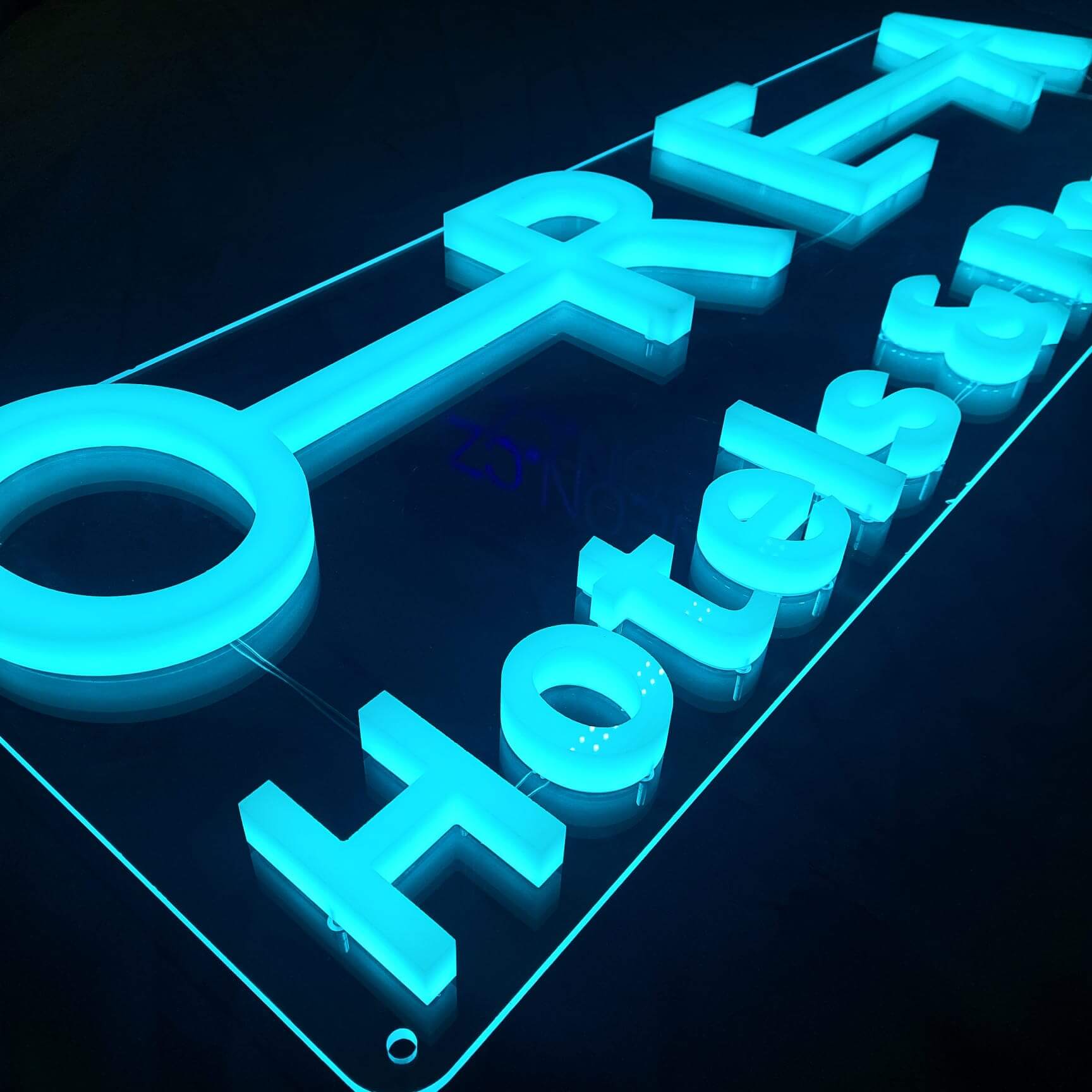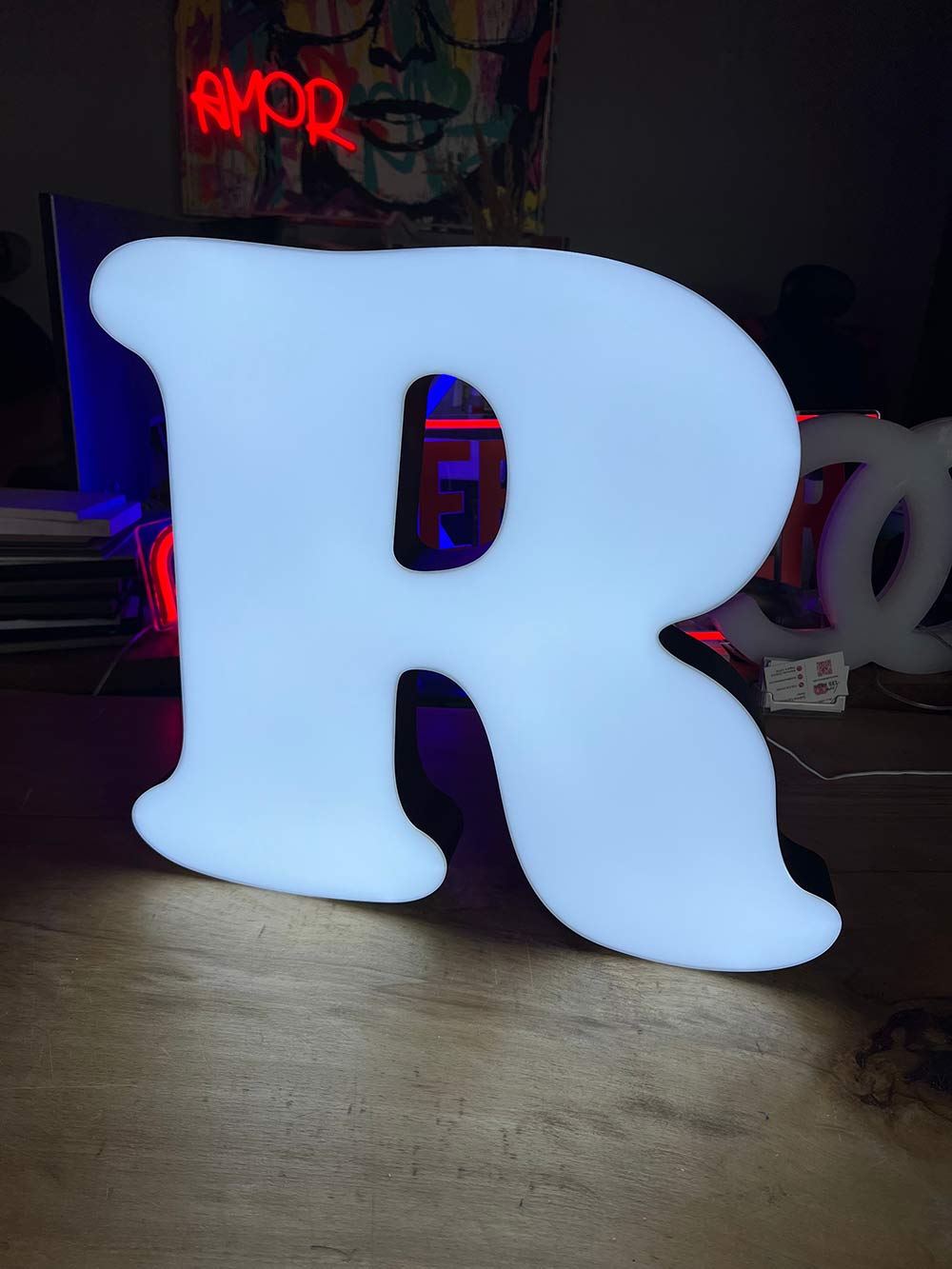 Nejoblíbenější variantou jsou opálová 3D písmena vyráběná z opálového plexiskla o tloušťce 20 mm. Písmena mají světlé čelo i boky a díky promyšlenému osazení LED pásků svítí výrazně a rovnoměrně, bez tmavých míst.